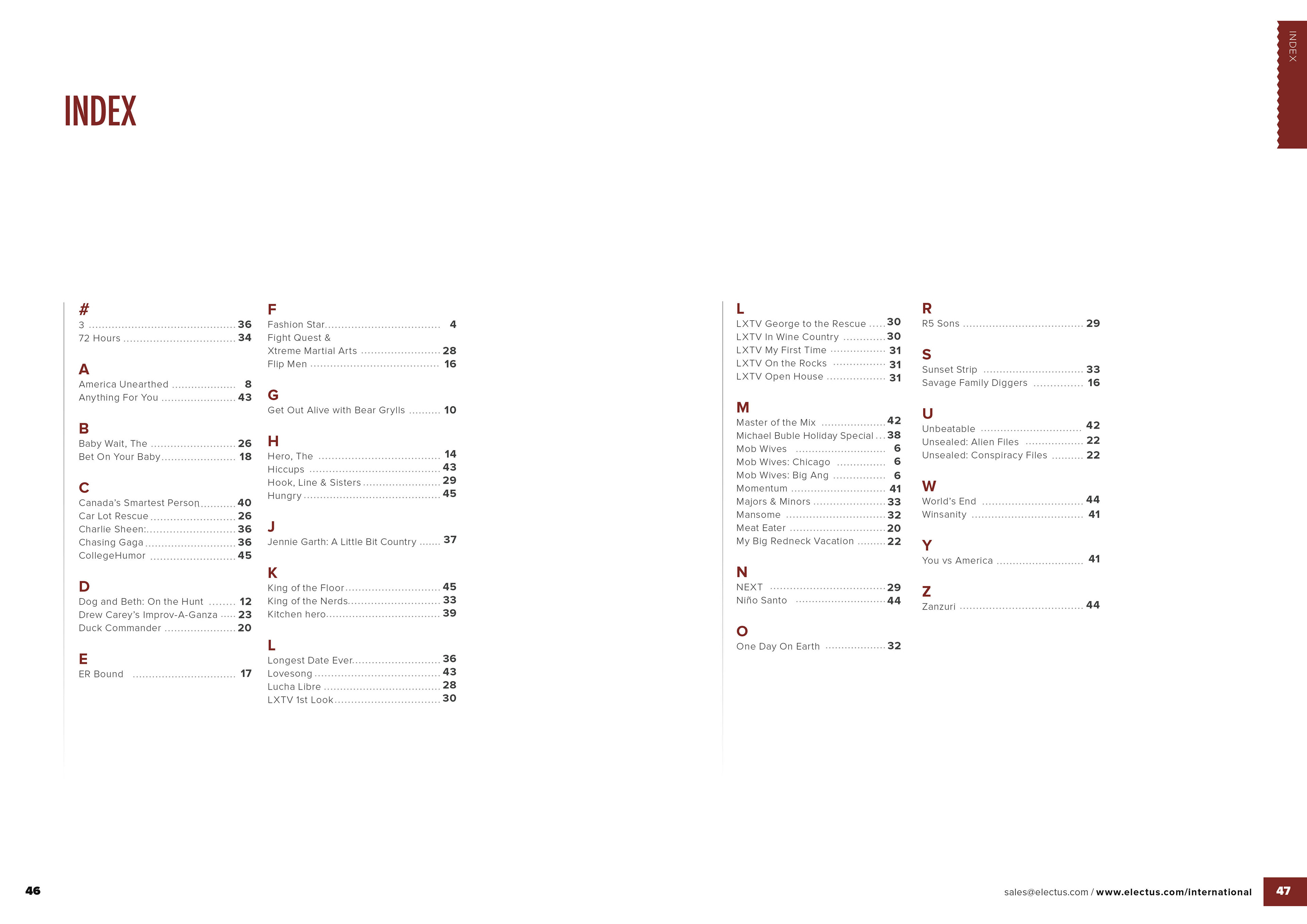 Catalogue design for Electus International. Created new branding treatment and layout for 2013 show catalogue.